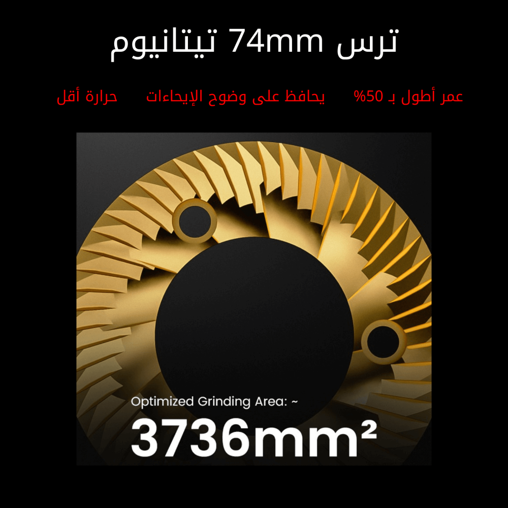 - تحتوي على 90 درجة طحن بمقدار 0.01mm, وتأتي من نوع step-less "بدون خطوات" مما يتيح لك ضبط درجة الطحن في ما بين الأرقام.
